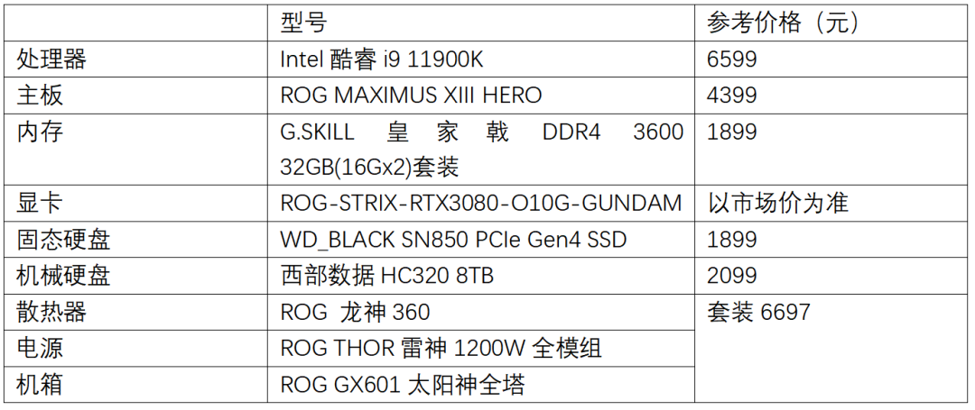 对于发烧信仰旗舰配置来说,选择ROG全家桶绝对不会错,不但性能优秀,稳定性高,而且还有不少信仰加成。第11代酷睿依旧使用了14nm工艺,功耗表现较高,这也对主板的选择提出了较高的要求。所以这里我们选择了旗舰级的ROG MAXIMUS XIII HERO主板。该主板在用料、设计和配置方面都是当下Z590主板中的佼佼者。