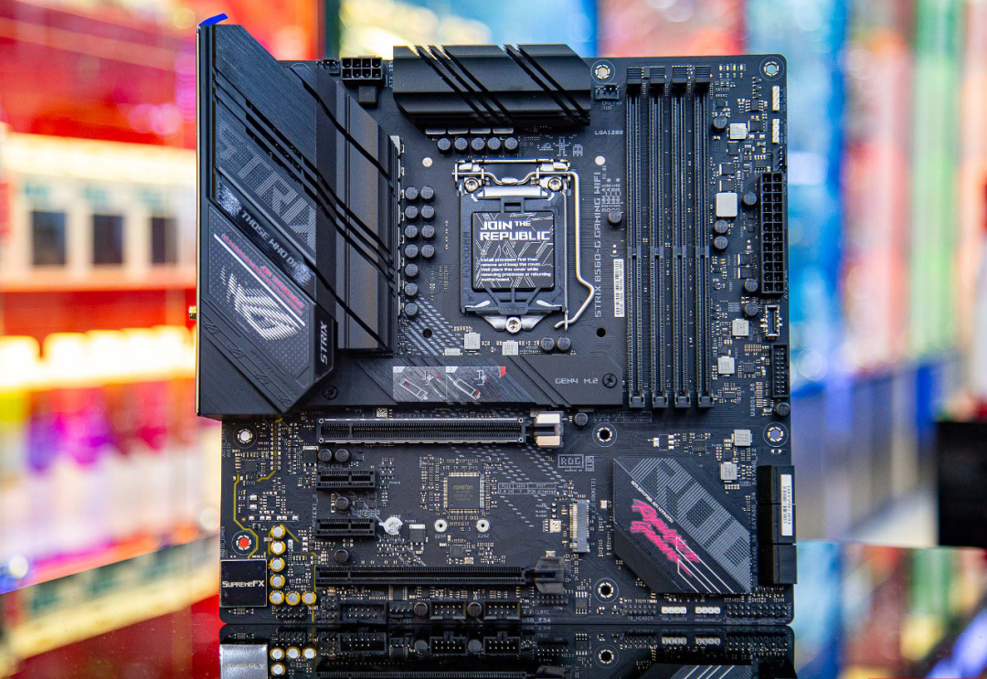 酷睿i5 11400F肯定是搭配B560,此次我们选择的是华硕ROG STRIX B560-G GAMING WIFI。产品采用了赛博朋克和电竞图腾元素的外观设计,I/O装甲上的ROG LOGO支持AURA RGB灯效,打造出炫酷又有个性的电竞视觉。8+2相整合式DIGI+ VRM数字供电方案搭配一体式封装的MOSFET及驱动IC,供电能效强悍而且体积小、效率高、散热好。