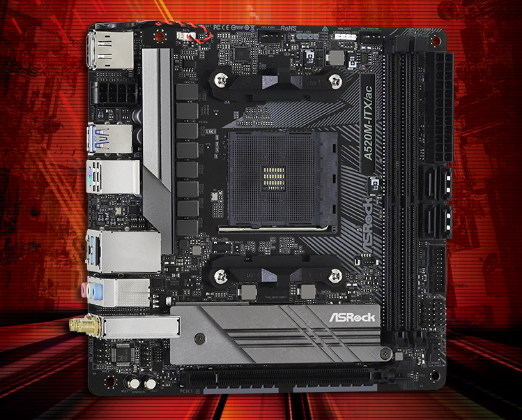 华擎A520M-ITX/ac采用了8相数字供电设计,配以60A电感以及更耐用的组件,用于支持TDP仅65W的锐龙5 5600G完全够用了。主板将M.2 SSD插槽设置在了显卡插槽上方的位置,华擎认为在这里可以提供更好的通风,对M.2 SSD的散热有好处。再加上主板自带全覆盖的M.2 SSD钢铁装甲,可以充分保证M.2 SSD的散热效率,不会因为温度过高而降低性能。
