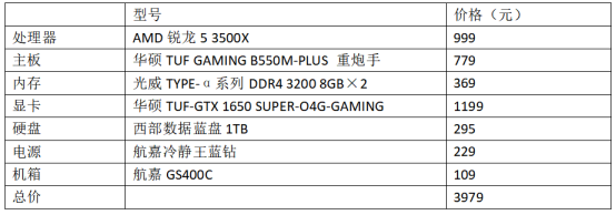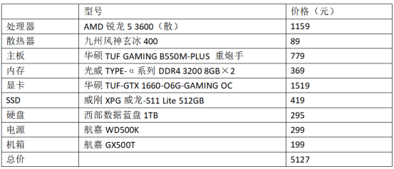 锐龙5 3600是主流用户的好选择,搭配华硕TUF GAMING B550M-PLUS 重炮手将处理器超频之后,性能就能略超同价位上的竞品。与华硕TUF-GTX 1660-O6G-GAMING OC组成的这套平台,足以满足在1920×1080分辨率和高画质下主流3A大作的运行需求。还配有512GB的SSD,能极大地提升系统运行、游戏载入的速率,这样一套配置5000元出头即可拿下,性价比也是不错的。