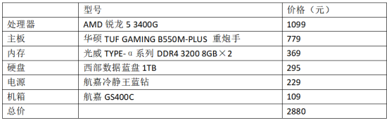 与Intel的产品相比,锐龙5 3400G有一个明显的优势是游戏性能强大,玩《英雄联盟》《守望先锋》等网游都不在话下,而且这一套锐龙5 3400G配置的价格也不高,3000元不到就能拿下,性价比很高了。同时AMD平台对高频内存的支持更好,所以选择了双通道DDR4 3200内存,追求更强的游戏性能。