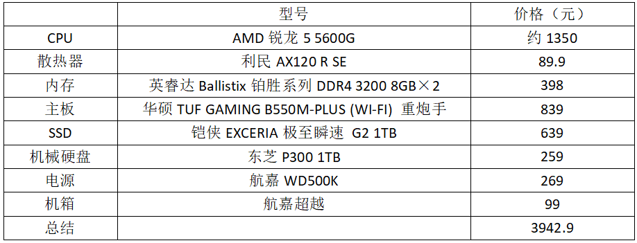 为了让锐龙5 5600G的性能充分发挥,我们选择了DDR4 3200内存。同时考虑到CPU的TDP仅为65W,为其搭配利民AX120 R SE散热器就能满足其散热需求了。