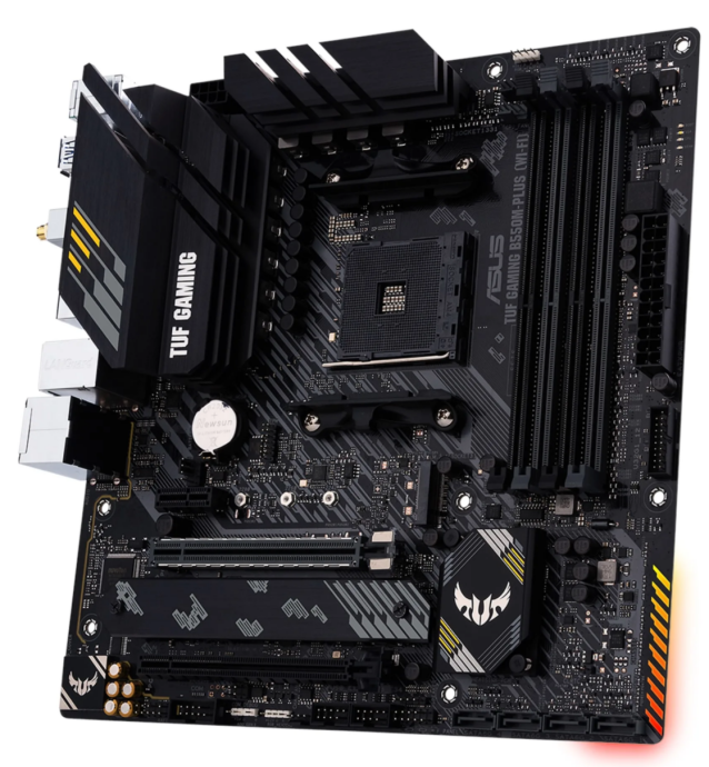 至于主板的搭配,依然选择了大家比较熟悉的华硕TUF GAMING B550M-PLUS (WI-FI)重炮手。这款主板采用了家族式的军事迷彩风外观,彰显个性和硬派的气质。8+2组Dr.MOS供电模组配以通过军规认证的TUF电感和TUF电容,拥有更好的高温耐受性,有效的延长使用寿命和提升系统稳定性。