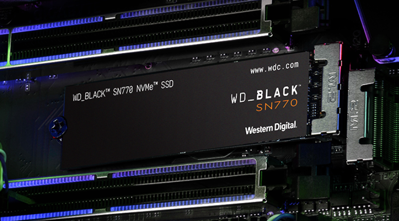 前几年首批上市的PCIe 4.0 SSD都是各家的旗舰产品,性能强悍但是价格也比较高。近期不少厂商都开始推出价格比较亲民但是性能又比PCIe 3.0 SSD要强的产品。比如WD_BLACK SN770 1TB,产品采用了标准的M.2-2280规格、单面颗粒设计,没有配置散热装甲,在台式机上使用时给用户留出了足够的增加散热片或者其他散热装置的空间。