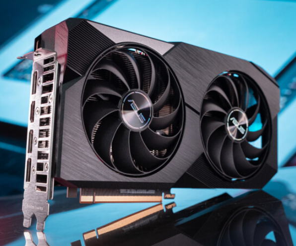 在具体产品上,我们选择了华硕DUAL-RX6600-8G。产品采用了双轴流风扇的设计,具有较小的轮毂、更长的扇叶以及环形密封环,可以带来较大的风量和风压,以满足GPU散热所需。轴流风扇内部还有双滚珠轴承,不仅运行安静、高效,而且具备出色的耐用性。另外显卡由全自动制程技术生产,更节约资源并且产品质量更高、寿命更长。显卡背面覆盖有铝合金背板为电路板提供强有力的保护,有助于防止PCB扭曲,能保护原件,避免线路损坏。