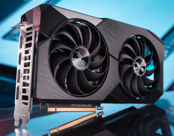 具体产品方面,依然是华硕DUAL-RX6600-8G。这款显卡采用了全自动制程技术生产,更节约资源并且产品质量更高、寿命更长。显卡背面覆盖有铝合金背板为电路板提供强有力的保护,有助于防止PCB扭曲,能保护原件,避免线路损坏。散热器方面,显卡采用了双轴流风扇的设计,具有较小的轮毂、更长的扇叶以及环形密封环,可以带来较大的风量和风压,以满足GPU散热所需。轴流风扇内部还有双滚珠轴承,不仅运行安静、高效,而且具备出色的耐用性。