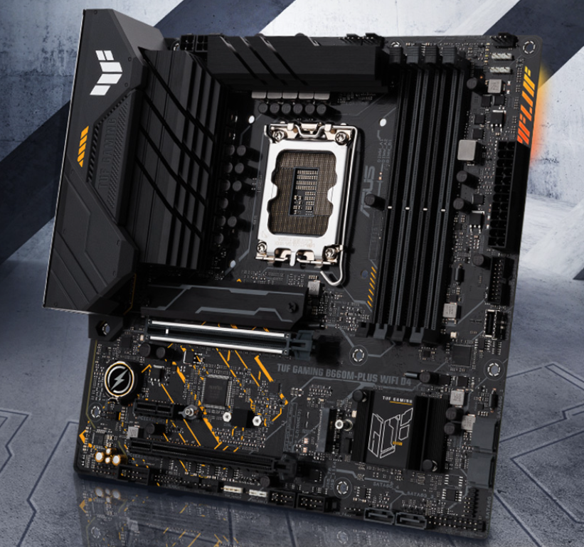 具体型号方面,首推华硕TUF GAMING B660M-PLUS WIFI D4重炮手。产品延续了TUF GAMING系列主板标志性的军事风格外观,还提供了3个第二代可编程ARGB灯效接针和1个RGB灯效接针,能够支持RGB灯带等设备,能帮玩家打造出更为炫酷的灯光效果。