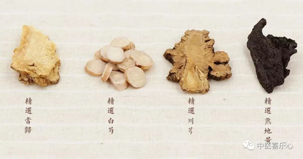 今天就给大家分享一个方子—四物汤,只有简单的四味中药,分别是熟地、当归、白芍、川穹。