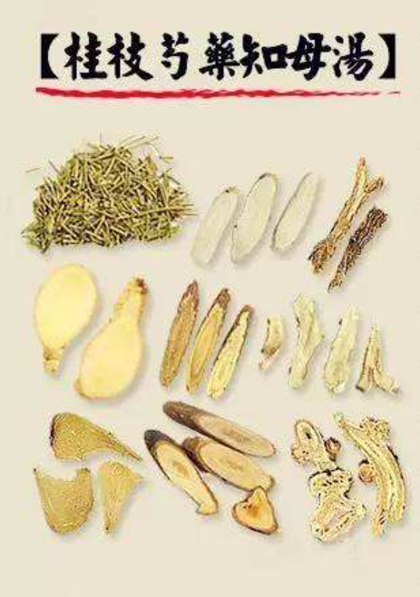 张先生是这么描述此方的:“诸肢节疼痛,身体尪羸(wāngléi)......桂枝芍药知母汤主之。”