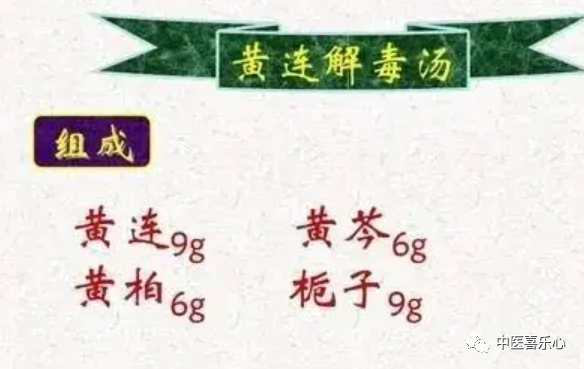 只有四味中药,名字叫做黄连解毒汤,这张古方有着上千年的历史,出自于唐代的医学匠作《外台秘要》,同时也是我们医圣张仲景经常用到的一个清热解毒的方子。
