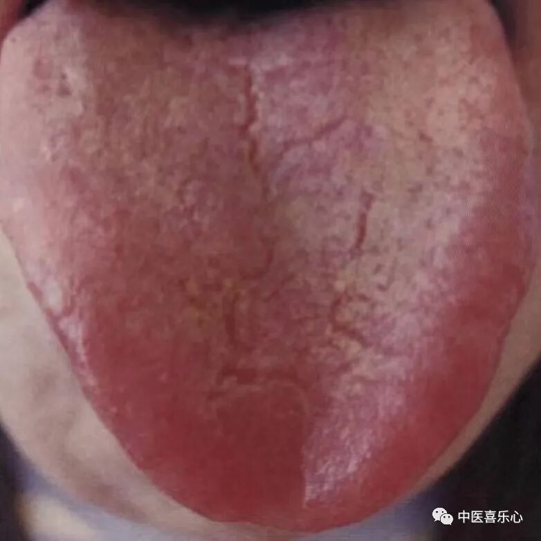 还有人有手足心比较热、夜里睡觉盗汗的情况,甚至会觉得轰一下热一阵,出好多汗,这类人舌上津液比较少,舌面还会有裂纹,苔黄腻且少。
