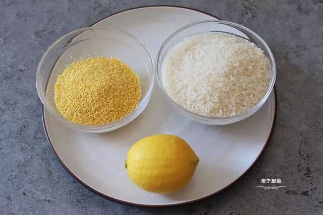 准备好食材:大米200克、黄小米100克、柠檬1颗、食用油一小勺。