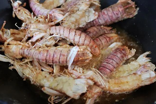 2、如果有的朋友希望皮皮虾更酥脆一些,可以等皮皮虾炸透后再提高油温复炸一次,口感更佳。