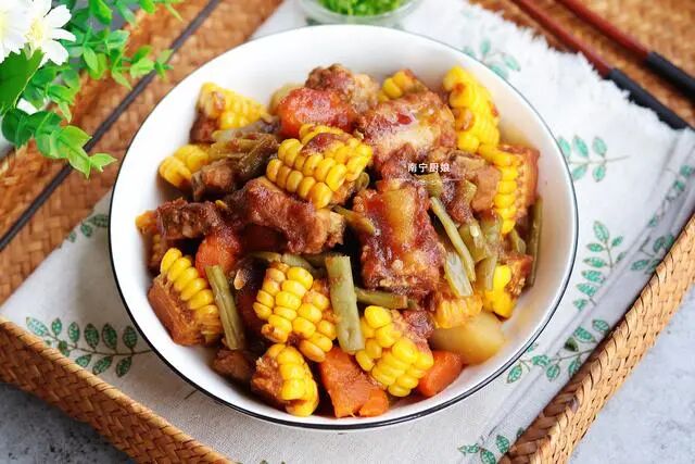 杂蔬排骨真的很适合做简餐,因为一锅炖的做法容易又方便,排骨、玉米、胡萝卜、土豆等食物相加起来营养丰富,可以满足人体一天需要的能量。当大家一个人在家不想煮太多菜,或者是工作太忙没有时间做,可以考虑这一道慢炖杂蔬排骨,可以说是好滋味、好享受、好营养,既能给大家减少做饭的时间,又符合大家健康养生的要求。