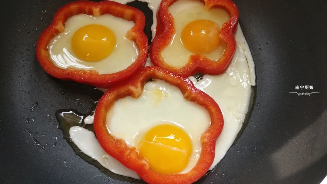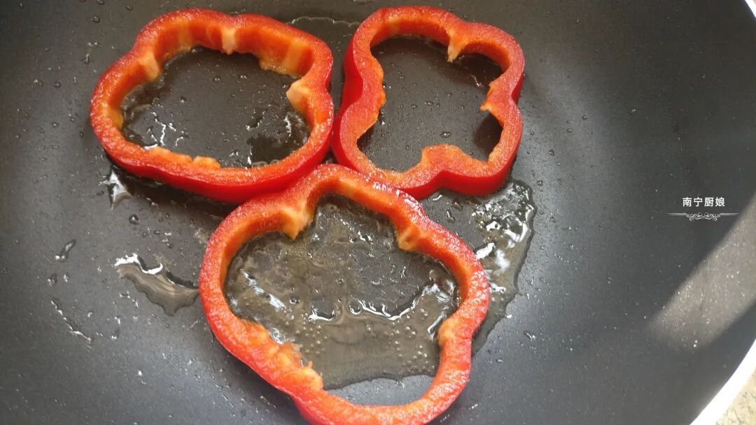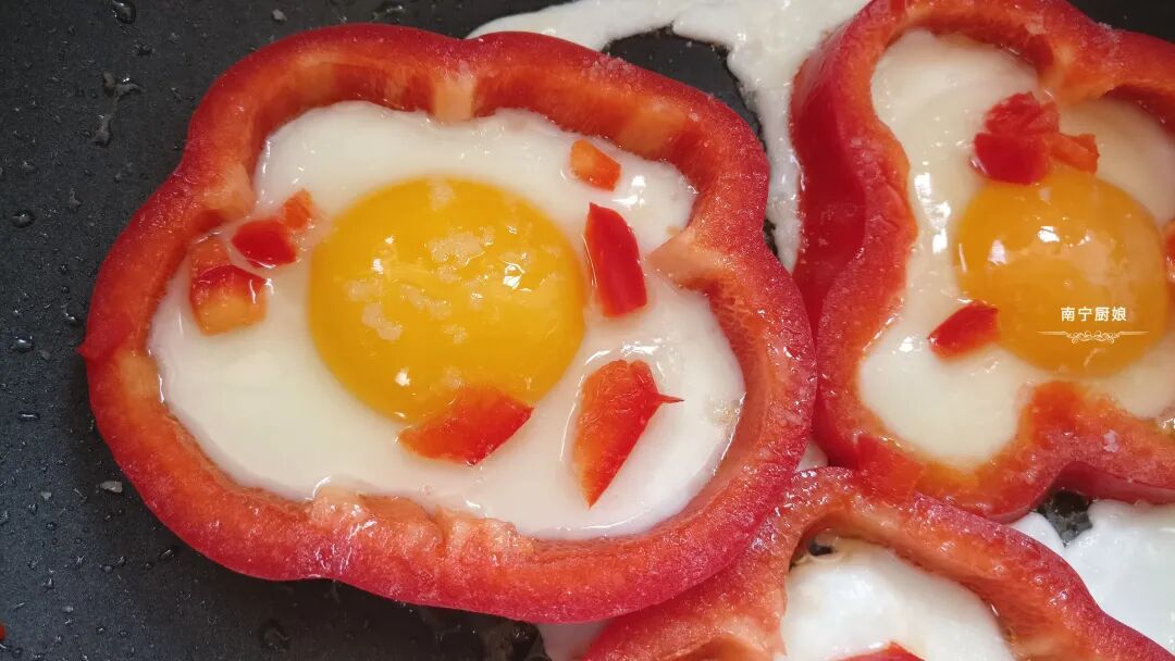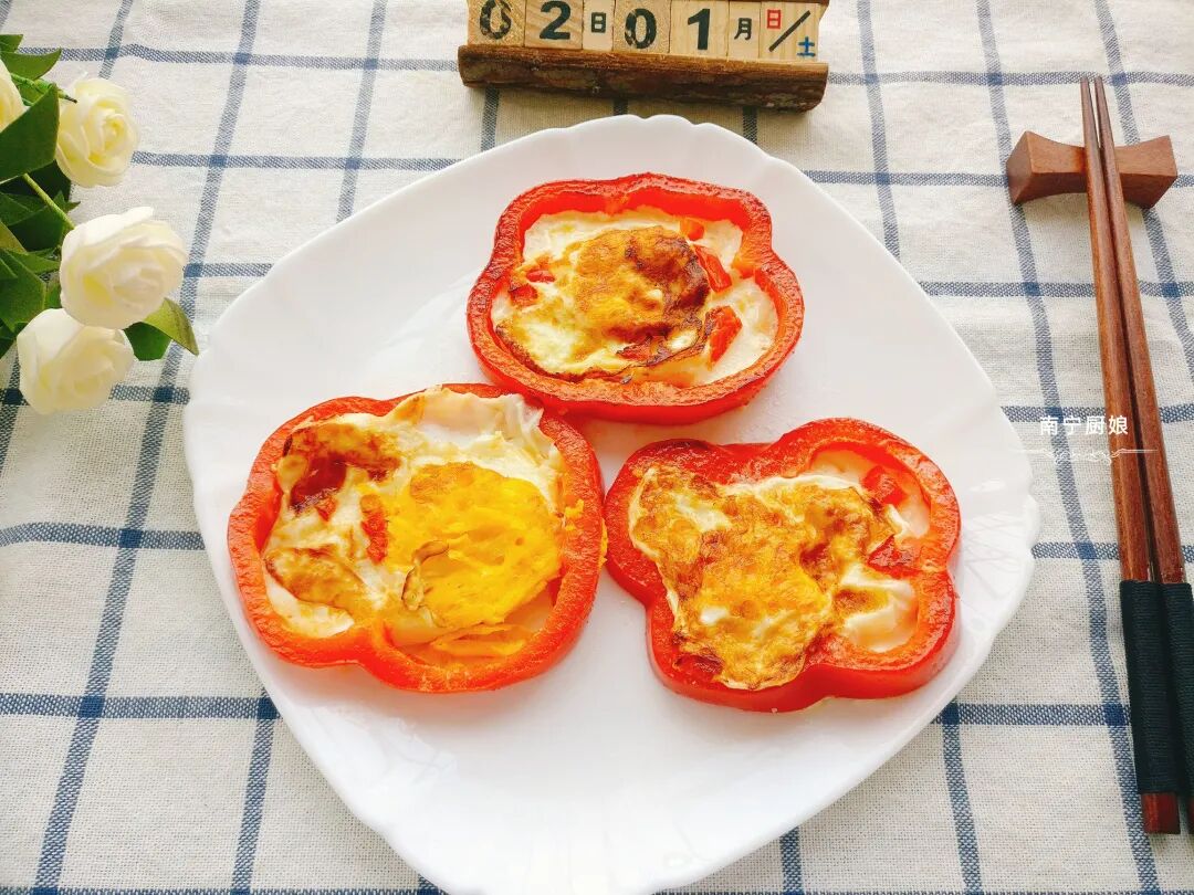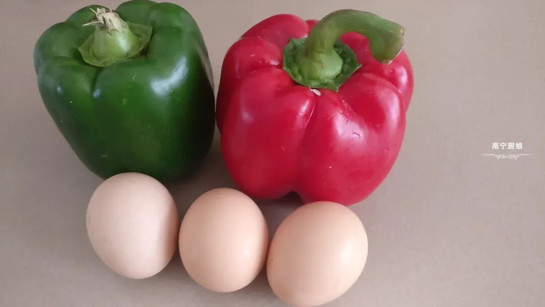 圆红甜椒1个、鸡蛋3个(几个人吃就几个鸡蛋)做法: