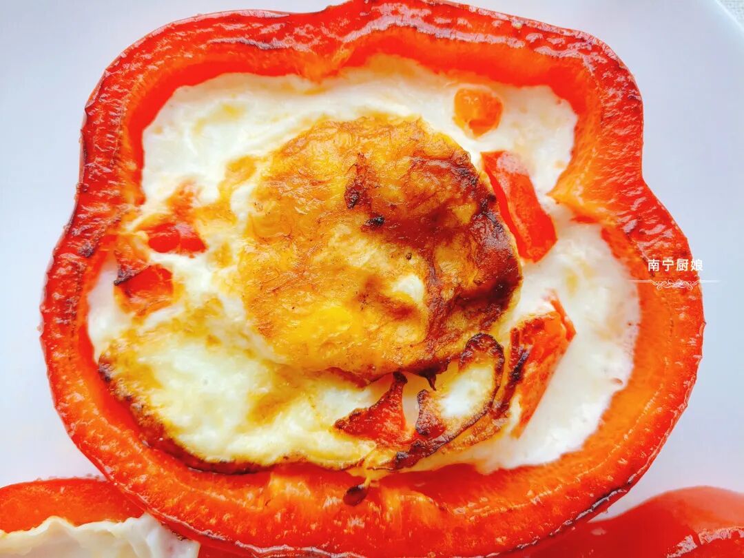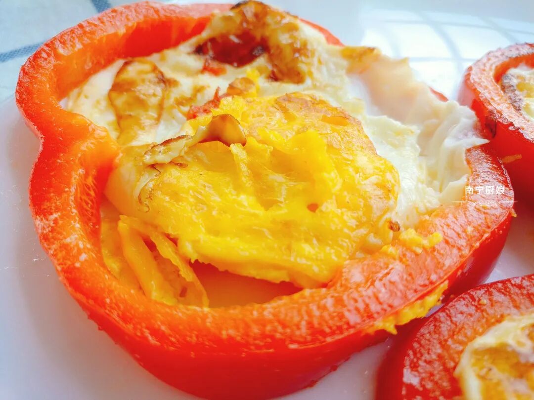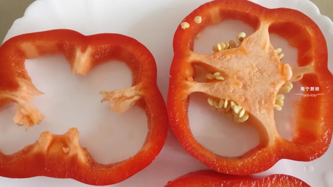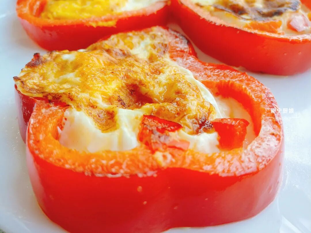 圆红甜椒1个、鸡蛋3个(几个人吃就几个鸡蛋)做法: