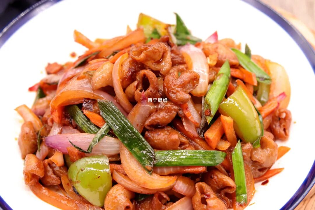 盛出装盘,一盘色香味俱全的爆炒肥肠就做好啦!