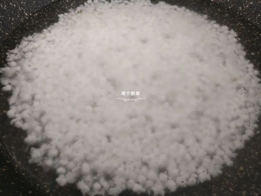 6、西米煮至透明后放在凉水里浸泡冲洗3次,这样会让西米吃起来更Q弹哦