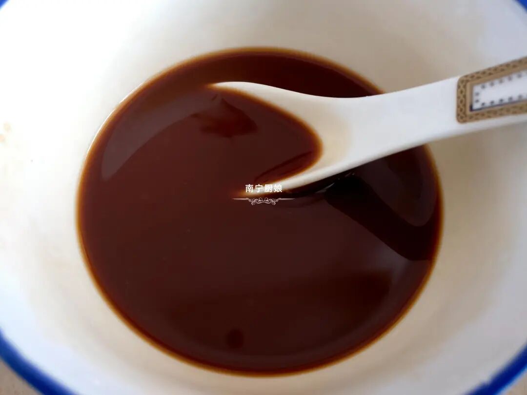 2、在碗里倒入生抽2勺、陈醋一勺、蚝油一勺、白糖一勺、豆瓣酱一勺、淀粉一勺搅拌成酱汁