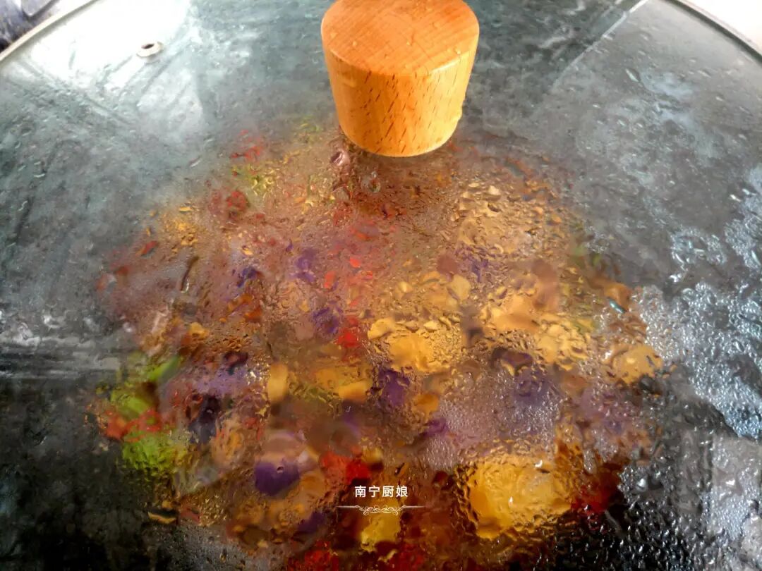 7、盖上锅盖焖煮3分钟(我们家的是铁锅,因为铁锅导热快,所以我闷了3分钟,如果你们是铝合金不粘锅或者铝锅之类的,可以适量时间长一点)