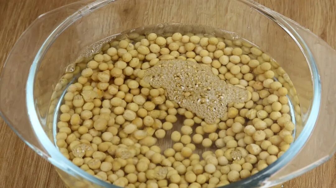 第一步:咱们先准备半斤的黄豆,把黄豆取出来之后稍微调整一下,把黄豆当中的一些杂质以及坏了的黄豆挑出来。然后加入适量的清水简单地清洗一下,把黄豆当中的灰尘杂质冲洗出来,黄豆清洗干净之后加入适量的清水,清水的用量最好没过所有的黄豆。接下来把黄豆直接放进冰箱的冷冻室里冷冻1~3个小时,直到黄豆结冰。