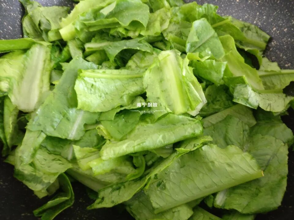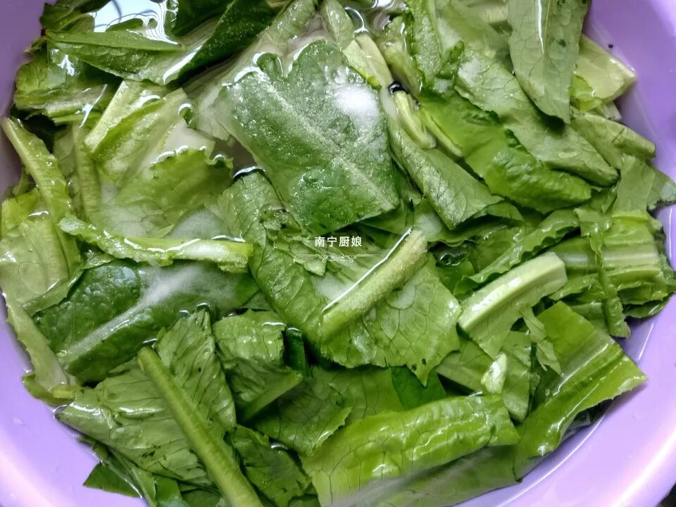 1、油麦菜先把它切成段,然后放在盆里,放入一勺食盐,再倒入清水浸泡10分钟以上,然后放在水龙头下冲洗几次沥干待用(把油麦菜放在盐水里浸泡不仅可以让叶子更加的翠绿鲜嫩,还可以同时去除菜叶表面残留的农药和把菜虫给逼出来,一举三得)
