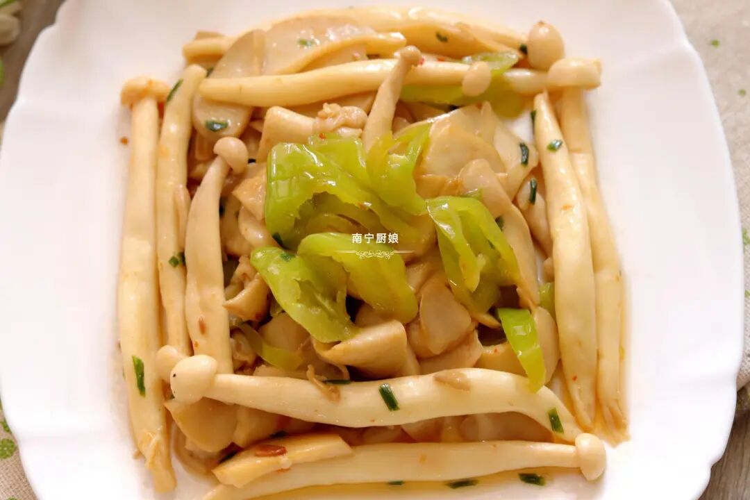 这两种菌种本身已经足够鲜美了,现在用这两种食材一起搭配炒,炒出来的味道更加的鲜美可口,而加入青椒后,可让这道虽然鲜美,但太过于清淡的佳肴变得更加的口感丰富,具有提振食欲的作用,可谓点睛之笔。我们一起来看下做法吧!