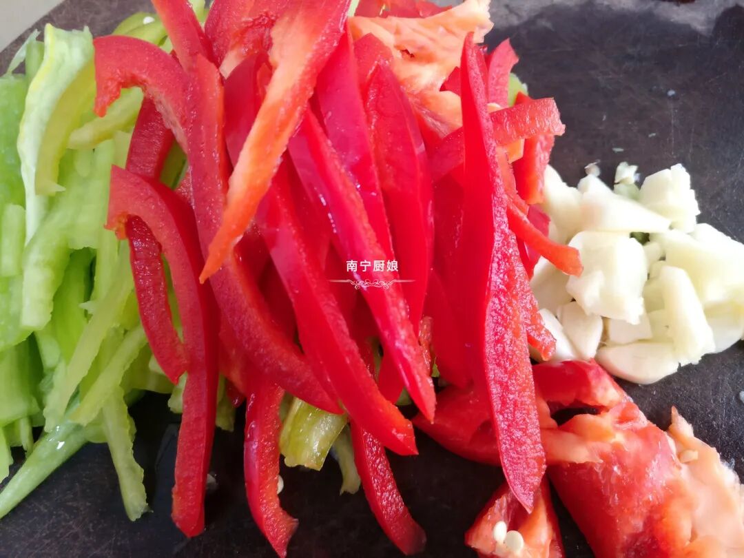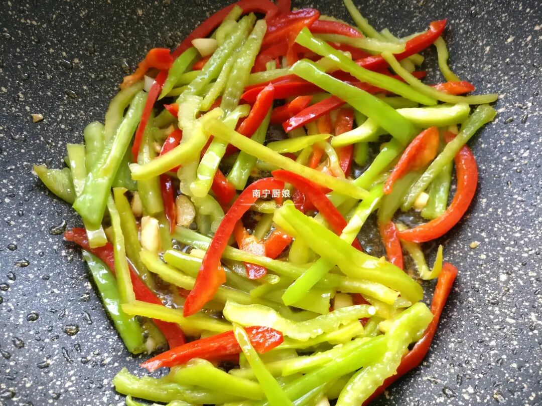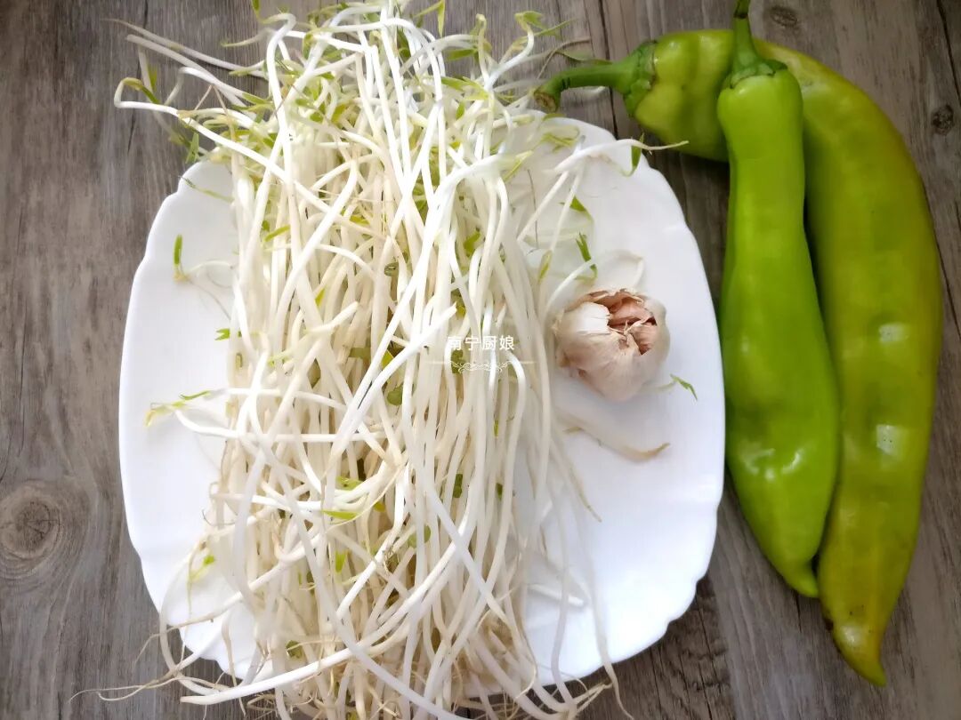 1、把青红椒洗净后切丝,蒜米切碎,豆芽过水清洗后,把根部一小段黄色的切掉,这部分是根部,吃起来不脆嫩哦,如果你喜欢吃我也没办法