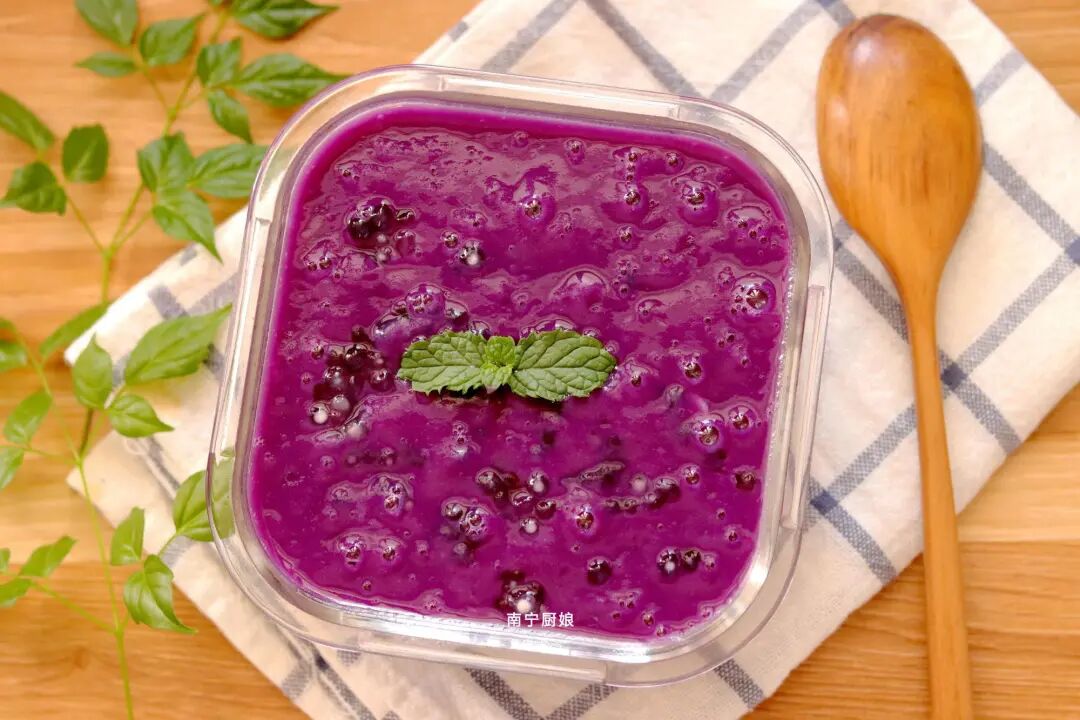 一碗高颜值又营养美味的紫薯西米露小甜点就做好啦!怎么样?是不是觉得光看颜色就已经诱惑的不行了?别急,夏天放在冰箱里冷藏个2小时再拿出来品尝,风味更佳哦!紫苏经过研磨搅拌,吃起来香滑浓郁,又带有一丝丝冰凉,这个夏天有了它,再也不愁火辣辣的太阳光啦!