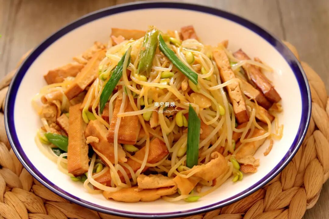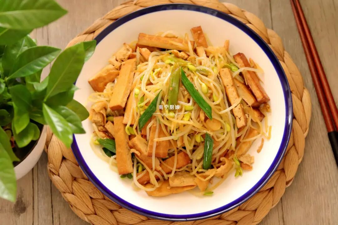 今天分享的这道简单快手家常菜是豆干炒豆芽,这两种食材名字里都带有一个豆字,也算是很合拍有缘吧!这两样食材搭配做成家常菜,鲜香下饭好滋味!