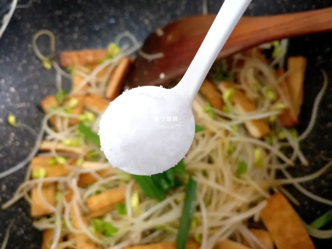 7、出锅之前放入一勺食盐,翻炒十几秒后就可出锅了