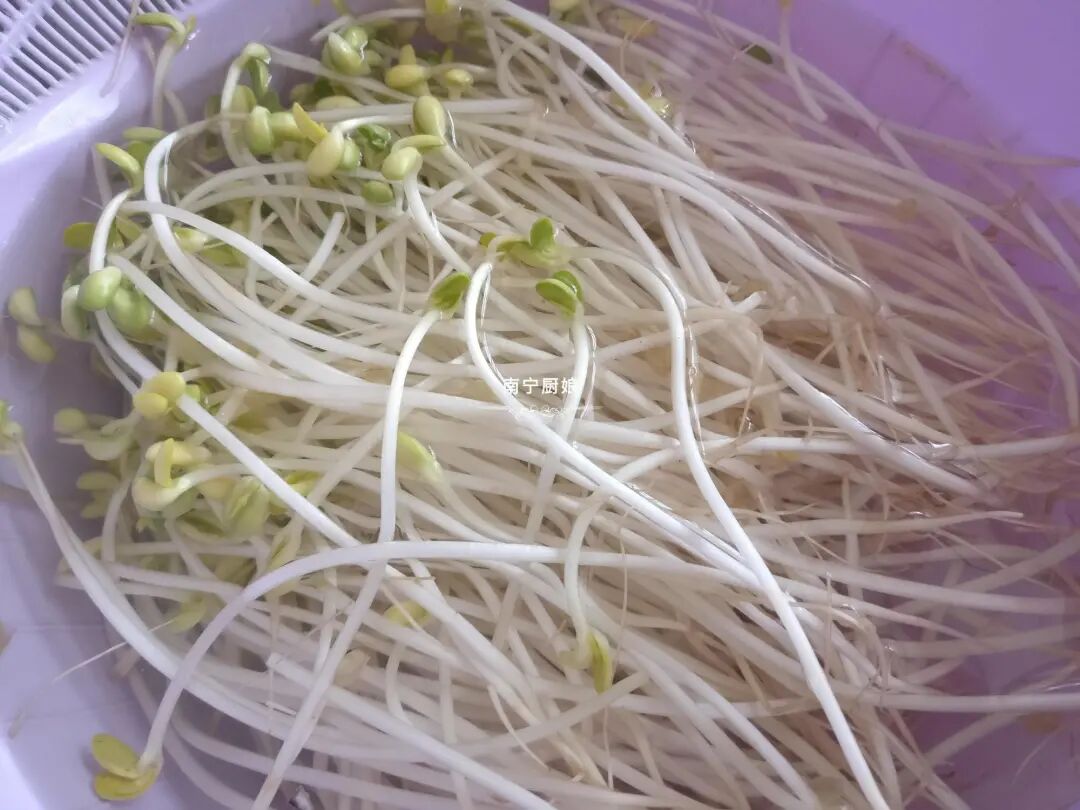 1、把买回来的豆芽放在盆里清洗干净,然后切掉下面的黄色根须,如果不在意的可以不理会,沥干待用