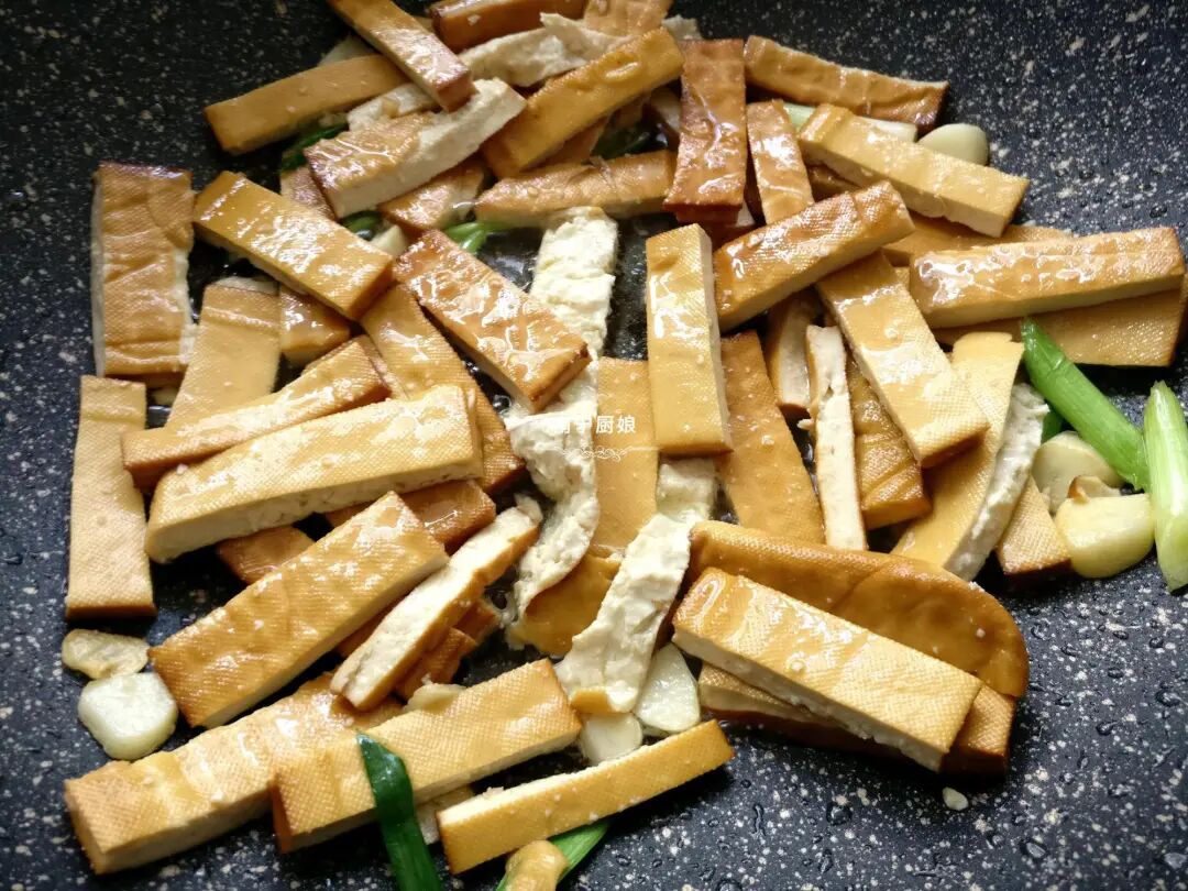 而豆干是豆制品,咸香爽口,硬中带韧,是一道很受欢迎的美食。豆干营养丰富,含有大量的蛋白质、碳水化合物、钙质、铁、氨基酸等营养元素。其中氨基酸含量达到8种之多,而且很容易被人体所吸收。豆干中钙质和维生素D可以很好的预防骨质疏松的发生,同时也可以促进小孩骨骼发育,对小孩和老人来说,都是十分不错的一种食品。豆干在加工制造的过程中添加了很多香料,像茴香、花椒、大料等都有添加,所以才会闻起来特别的鲜香,让人百吃不厌,也被人们称为“素火腿”。