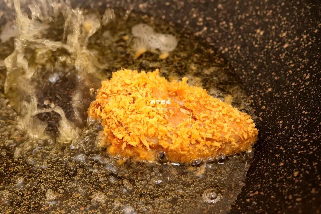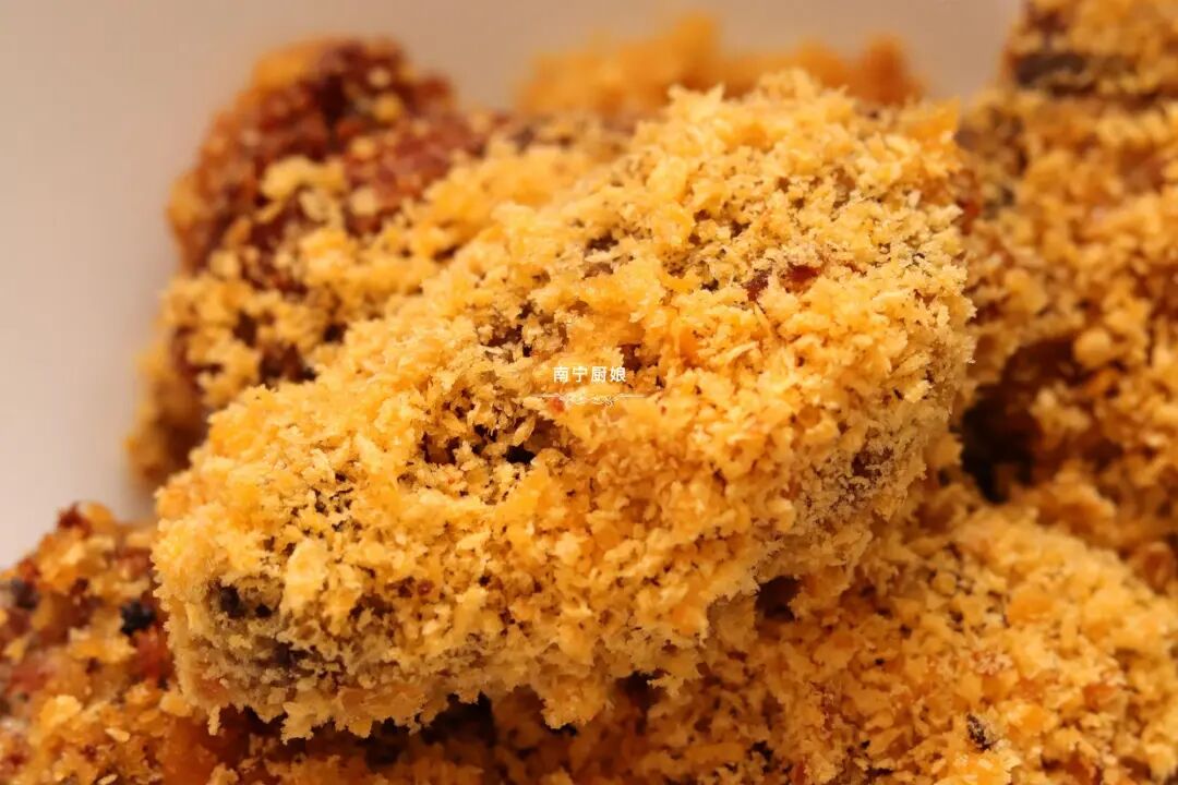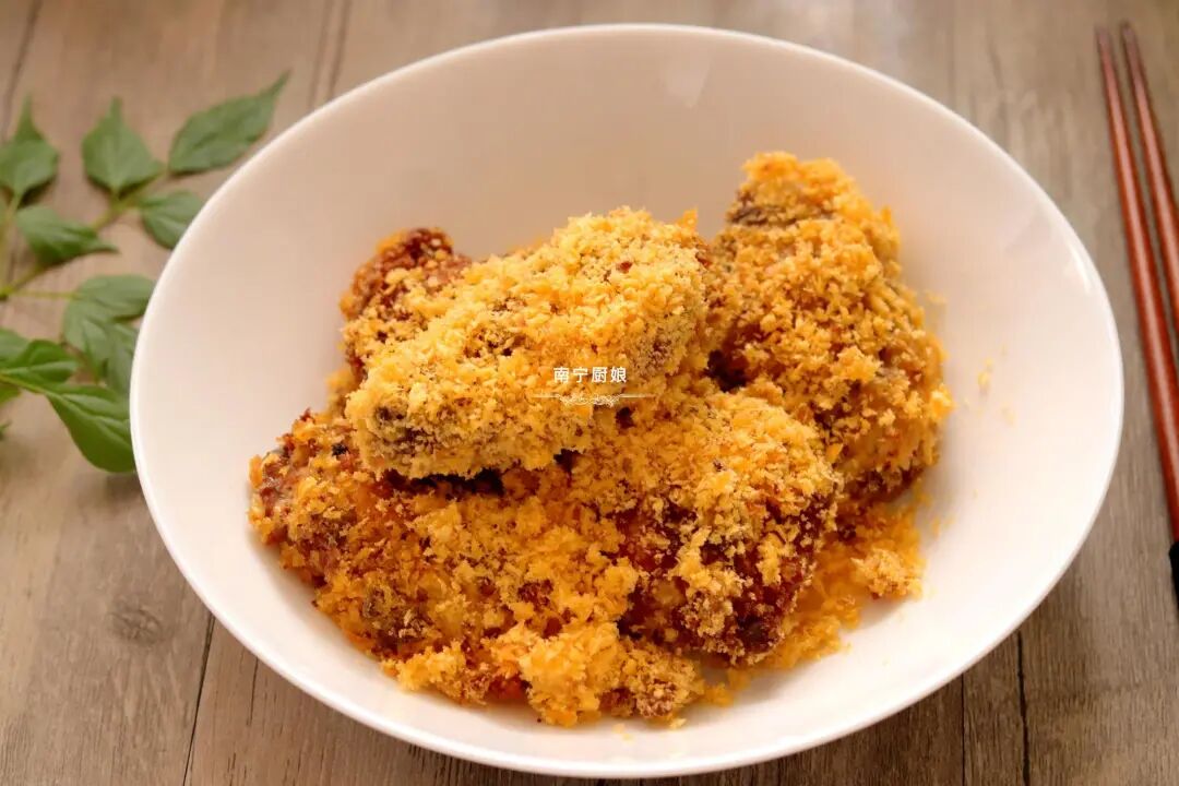 很多朋友问我怎么让面包糠都沾满在鸡翅上,为什么自己在家每次做这道黄金鸡翅的时候,面包糠总是掉的一地。其实大家不用着急,想让鸡翅能裹满面包糠不掉,只要在过面包糠之前再沾上一层蛋清就好了,沾上蛋清不仅可以让鸡翅在煎炸后变得更加的鲜嫩美味,还让面包糠更好的挂在鸡翅上,还有一个方法就是在炸完第一次后再裹上一层面包糠,这样就完全保证煎炸出来的鸡翅是包裹着面包糠的啦!金灿灿的,一口咬下去,煎炸得脆脆的面包糠粒在嘴里被牙齿咀嚼得卡擦卡擦的响声,咬到鸡肉部分的时候,又感觉特别的鲜嫩,这就是外酥里嫩的感觉啦!吃起来特别有趣还特别香!
