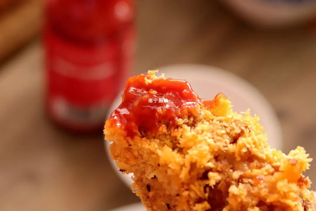 复炸一次后,盛出装盘,在小碟子里挤上一碟番茄酱沾着吃,酸甜可口,咬到外面金黄的面包糠时,酥酥脆脆的,好吃极了!鸡翅这样做,好吃到跺脚,做起来还特别简单,10分钟就可以出锅,我敢说,10个人里就有9个人爱吃这盘菜,外酥里嫩,好吃到飙泪。