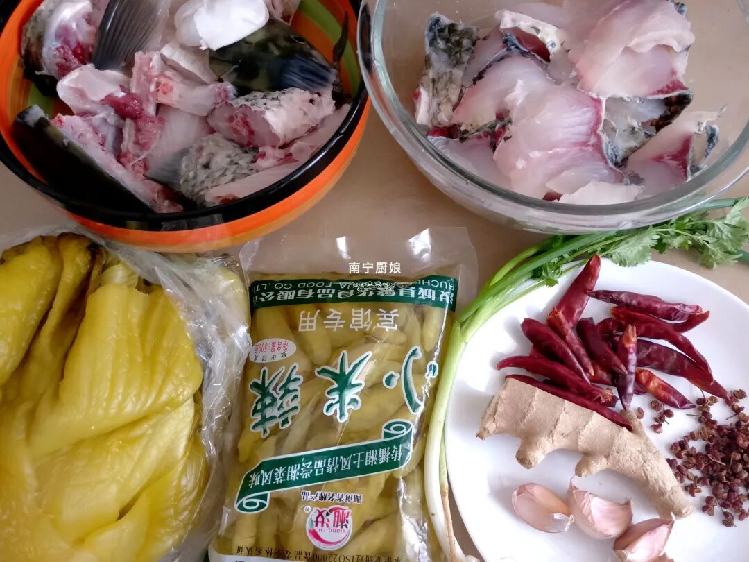 准备好食材:草鱼一条(3斤)、酸菜一朵、泡椒一包(只用到200克)、干辣椒150克、生姜一块、蒜米4粒、花椒100克、柠檬一个、鸡蛋一个、料酒3勺、食盐2勺