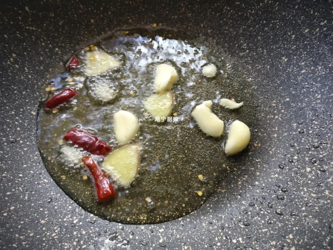 6、重新起锅,翻入适量的油,放入姜蒜爆香