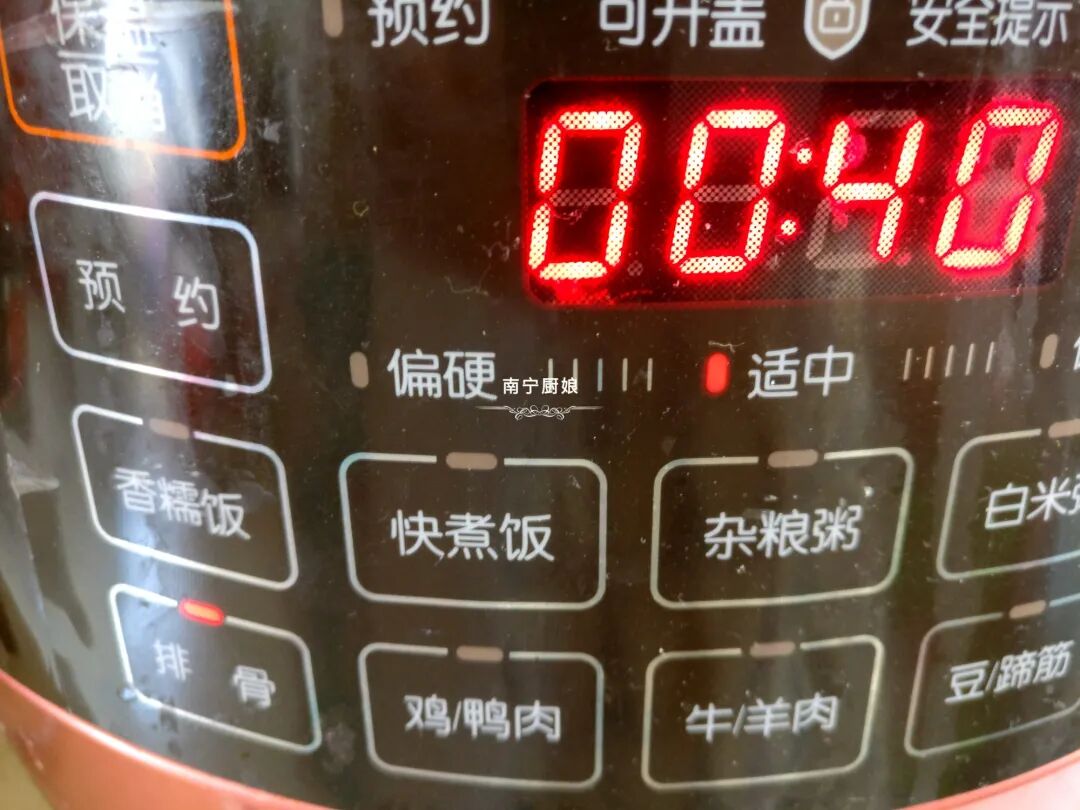 2、我的是电高压锅,我选择的是排骨炖煮按键,40分钟后就可以把莲藕炖煮软了