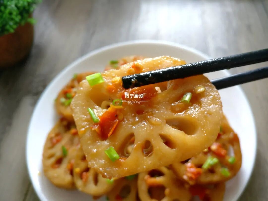 莲藕炖煮后,吃起来粉粉糯糯的,又香又辣,超级开胃,现在夏天我们家每次做这道凉拌菜,3分钟就抢光了!