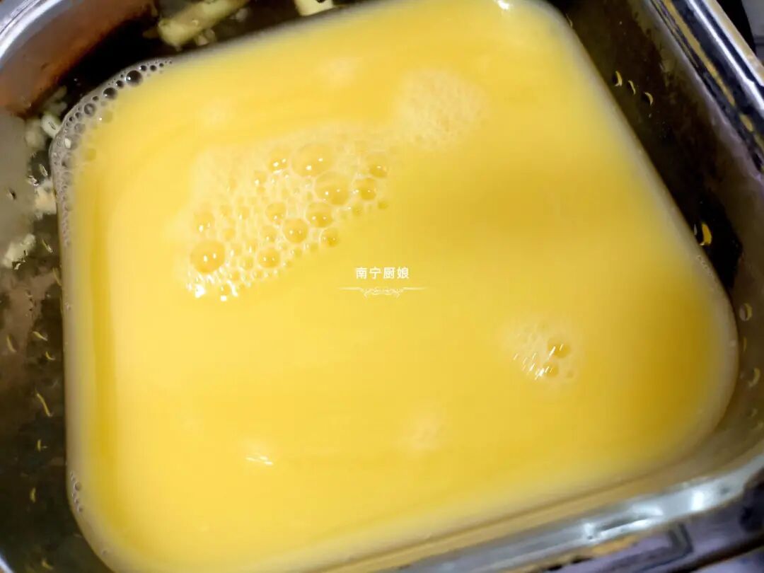 1、打蛋的时候,大家一定要顺着一个方向打,要不然鸡蛋液很容易起泡,从而最终蒸出来的时候,有鼓包或者凹坑哟!