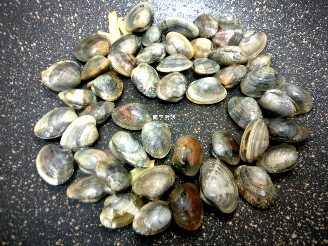 1、把蛤螺买回来放在盆里,放入一勺食盐,几滴食用油,再把一把不锈钢汤匙放进去,放入这些东西好让蛤螺快速地吐出沙子,大概浸泡30分钟后刷洗干净蛤螺外壳,冲洗干净后沥干,起锅,倒入少量的花生油,放入姜丝炒香,然后倒入蛤螺一起大火翻炒