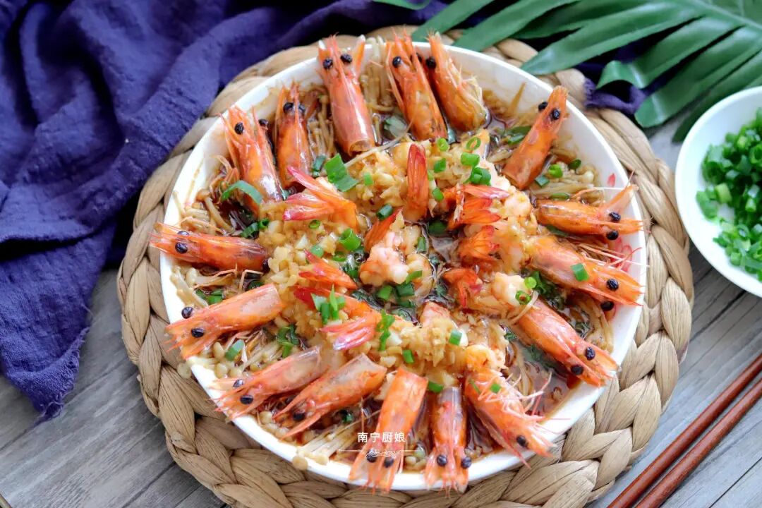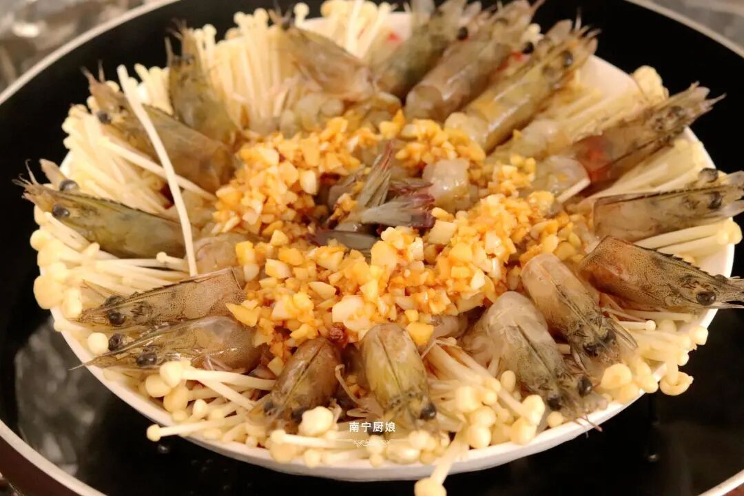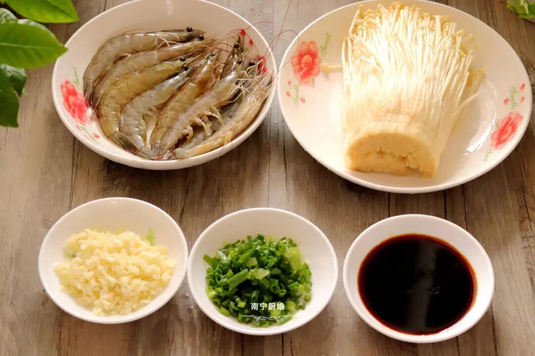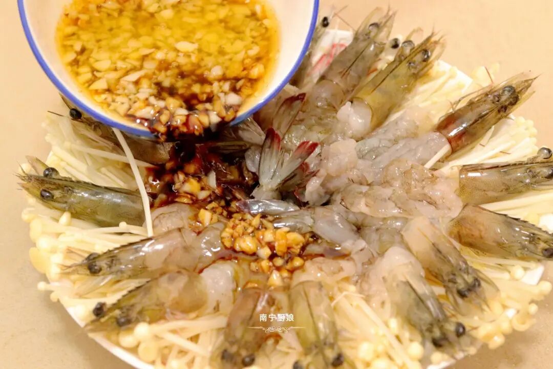 金针菇和鲜虾都是十分鲜美的食材,口感也都是吃起来很Q的,把这两种最为鲜美的食材一起蒸,蒸出来的味道更加的鲜嫩,而且整道菜也是十分的好看,做起来也是简单得很,调味料也不需要太复杂,就是家里日常里用到的味极鲜就可以让这道菜足够鲜美了,蒸出来的汤汁如果用来拌饭或者拌面吃,那也是足够你干掉2碗米饭的。