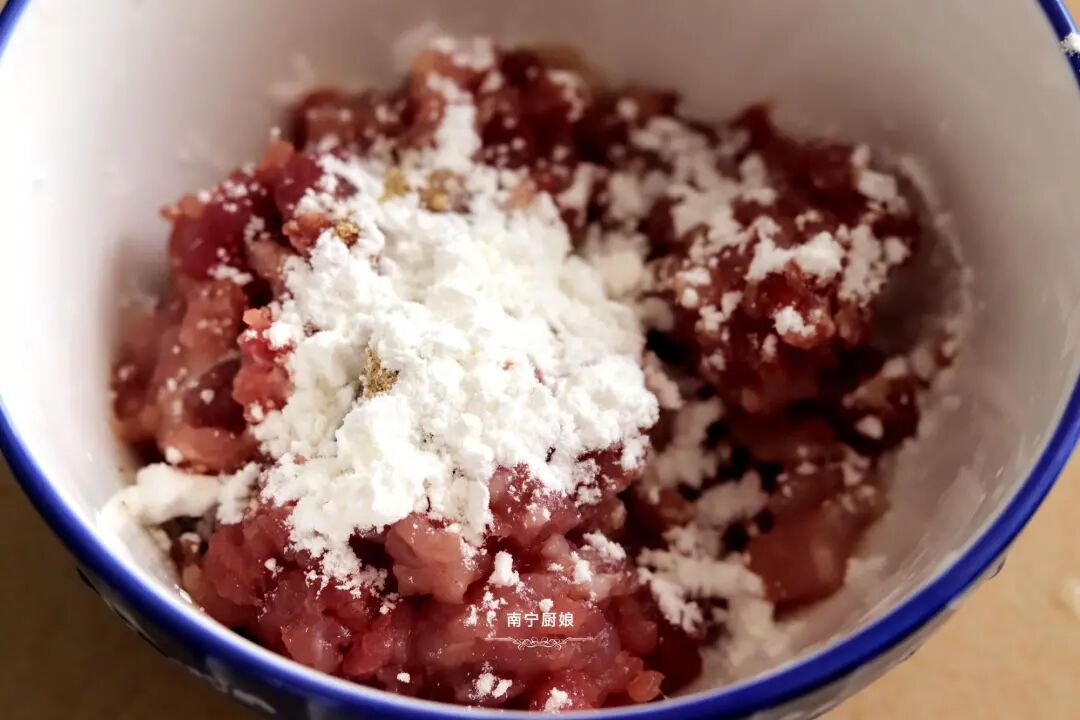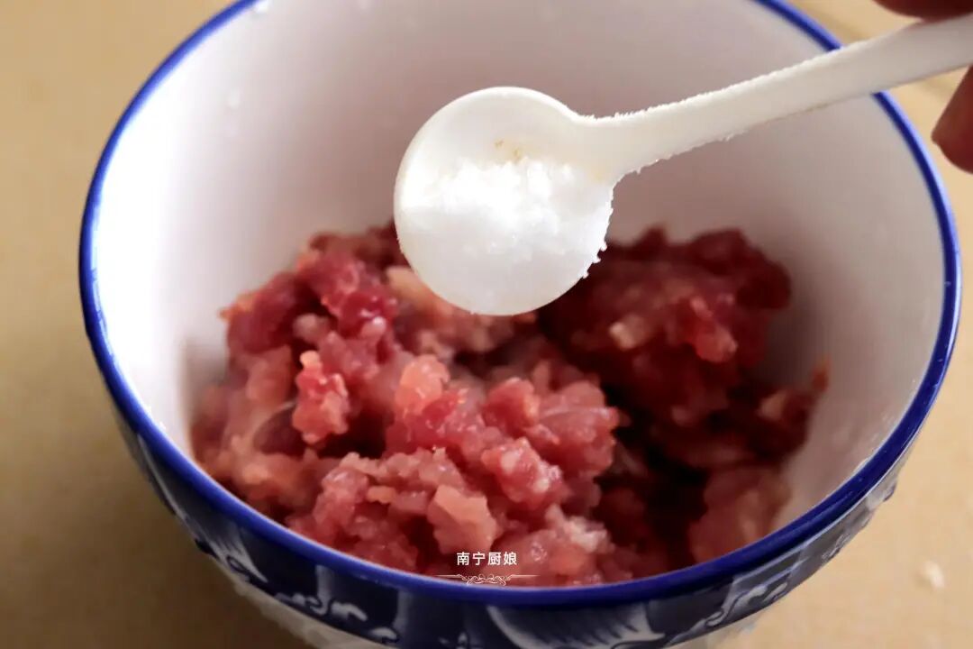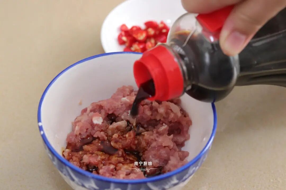 3、倒入1小勺味极鲜一起搅拌均匀腌制10分钟