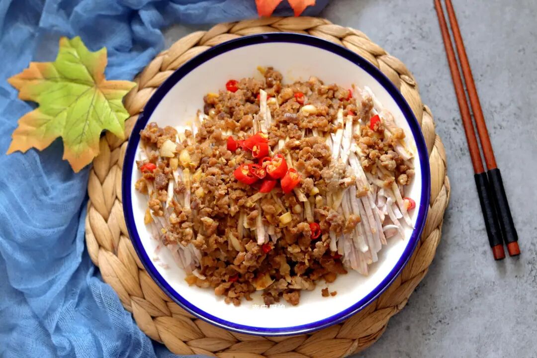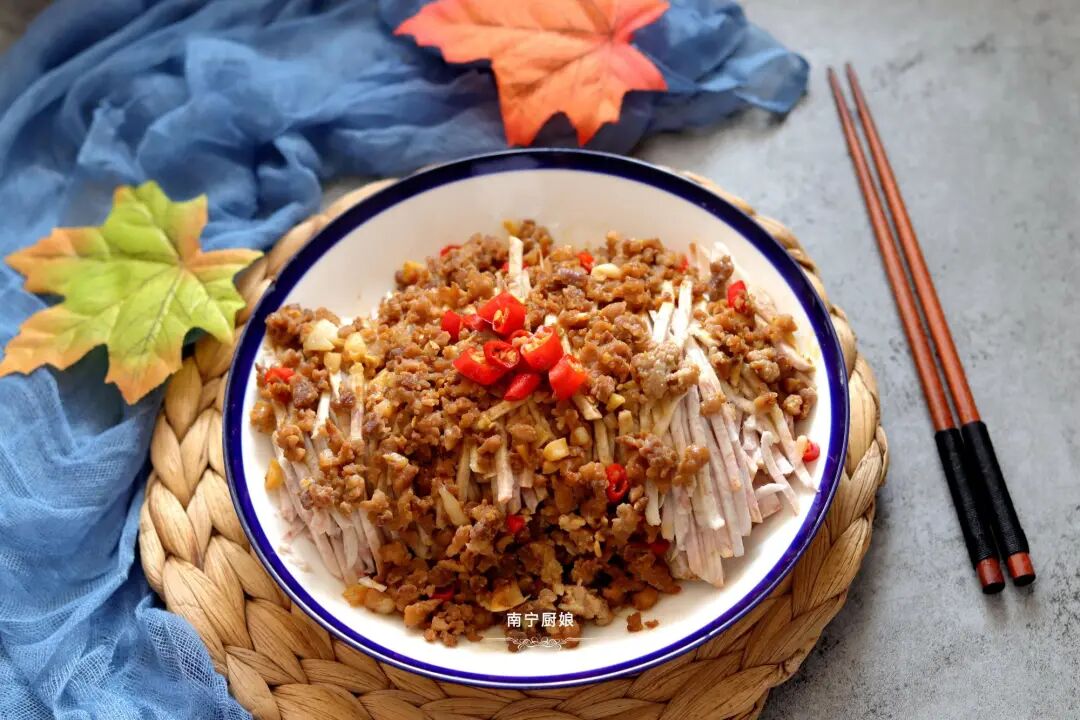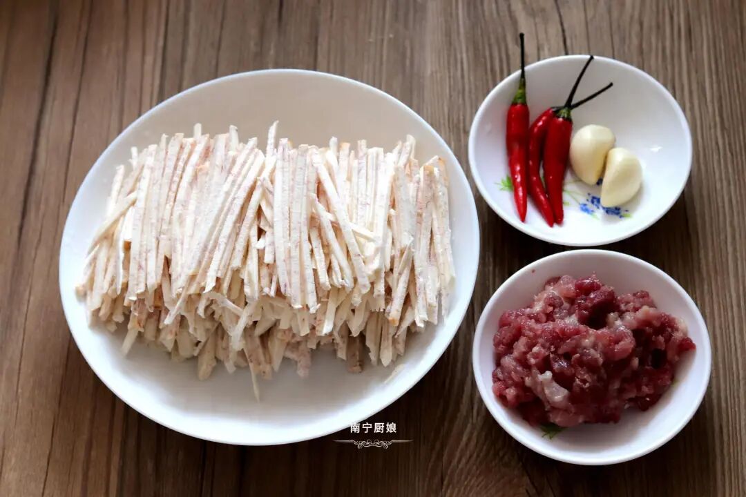 芋头丝经过吸收了肉末的鲜香和油脂,吃起来变得更加粉嫩鲜香了,吃起来特别好吃,家里的老公特别喜欢吃!自己干掉了半碗!真厉害!