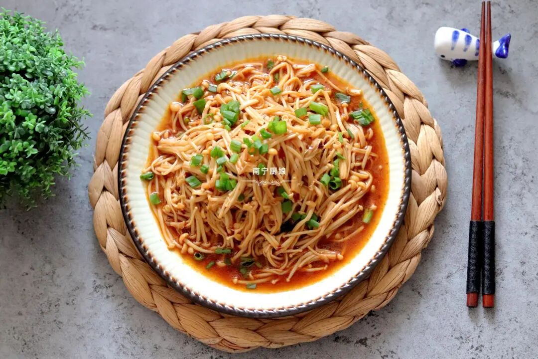一盘清脆又香辣开胃的酱香金针菇就做好啦!