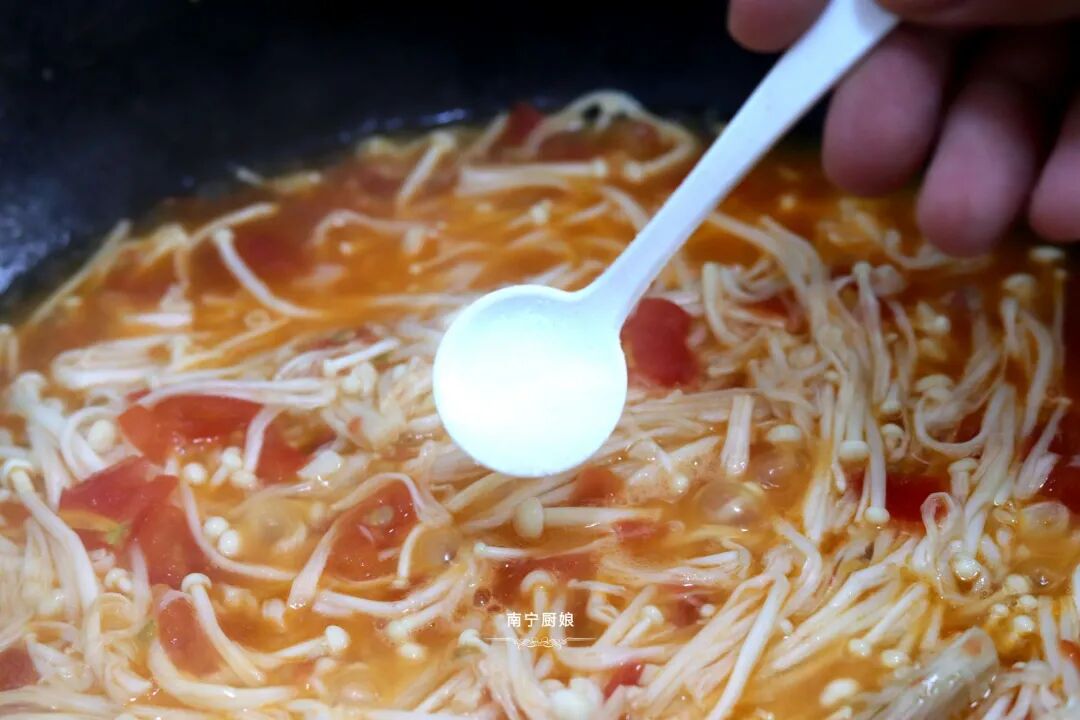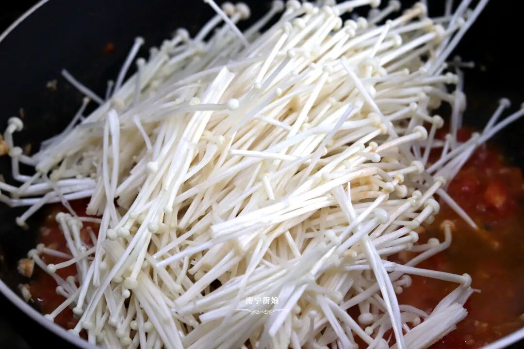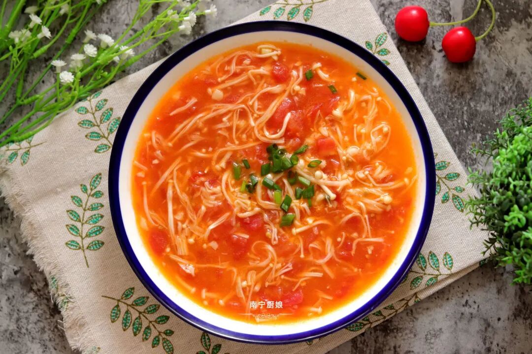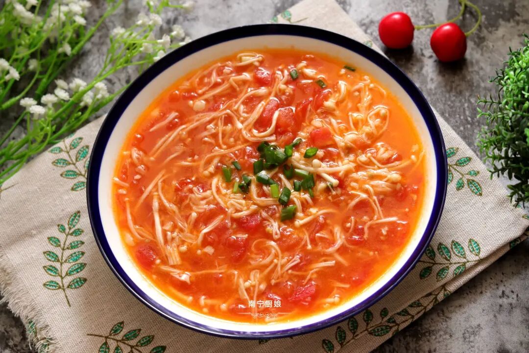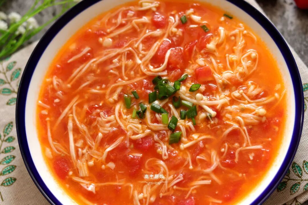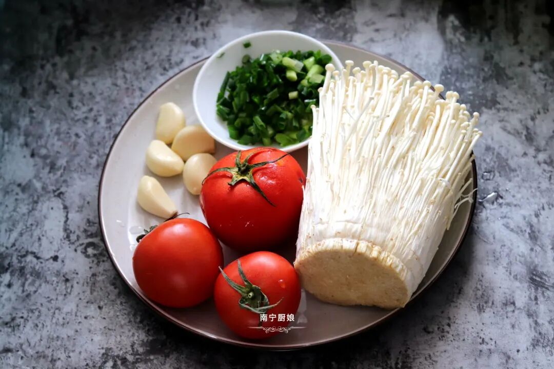 西红柿是一种很家常的食材,在市场上几乎每天都可以购买到,而且好吃不贵。西红柿最常见的做法无非就是西红柿炒蛋了,但人总是喜欢图新鲜感的,也不喜欢吃得千篇一律,所以今天厨娘和大家分享一道西红柿和金针菇一起结合烹调的美味做法——西红柿烩金针菇。这道菜不仅颜值高,味道也是酸甜爽脆,吃起来特别开胃上瘾,让人吃一次就忘不掉,大人小孩都爱吃!