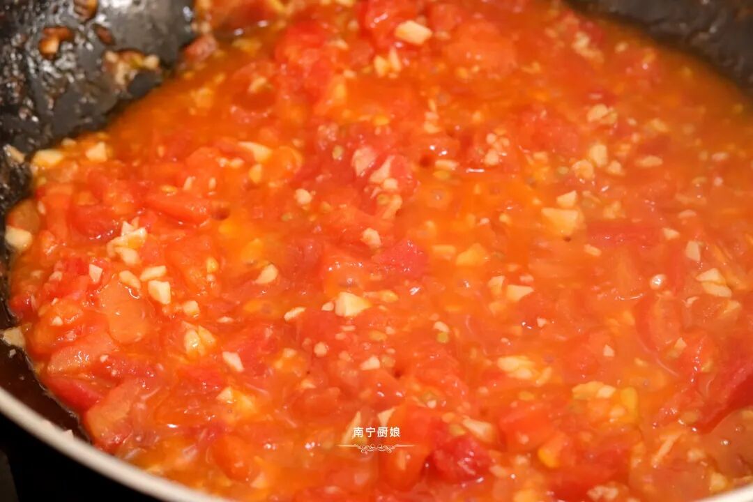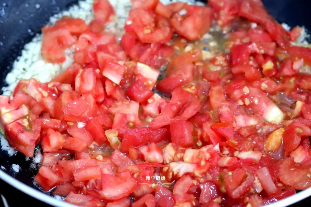 5、把西红柿充分地煸炒,让汤汁更浓稠