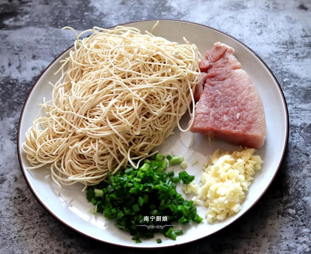 今天一个人在家,一个人的饭菜不好煮,于是打算午餐懒得做了,随便吃点填饱肚子就行。打开冰箱发现昨天做炒面的手工面还剩下一半,还有一小块早上做早餐剩下的猪肉,干脆就想着拿这些现有的食材做拌面吃吧!