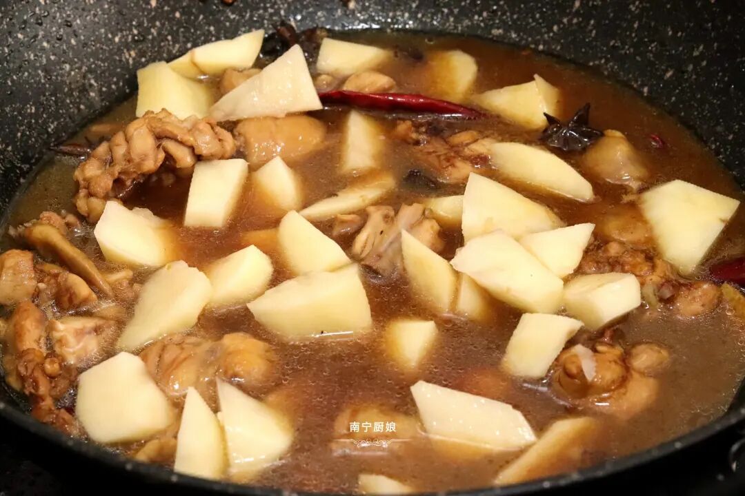 9、再倒入土豆块,盖上锅盖焖煮上20分钟