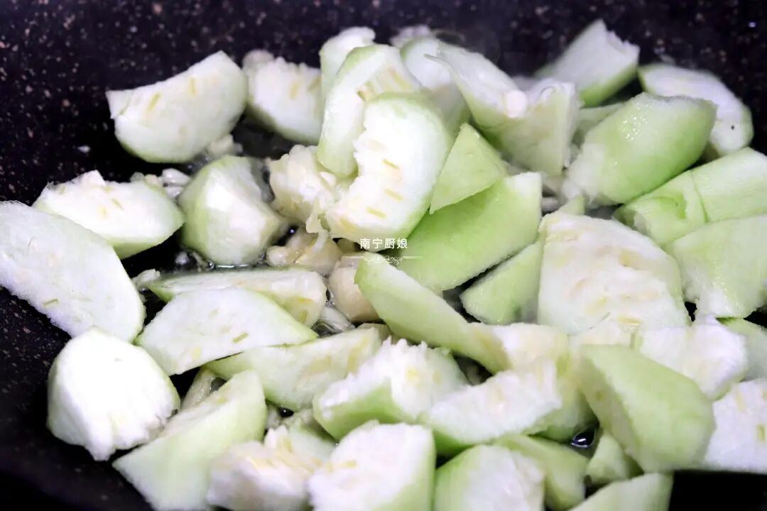 1、丝瓜最好切成滚刀,这样就会让丝瓜的受热面积增大,更容易炒熟。